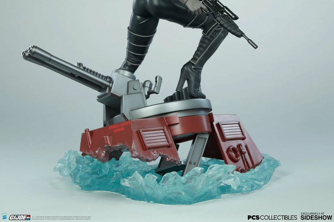 The Baroness Statue measures 22β tall as the ruthless lieutenant straddles the turret cannon of the Moray while it sinks beneath the water.Β Blue translucent waves churn against the red hydrofoil as Baroness stands her ground, waiting for extraction from the battle against G.I. Joe.