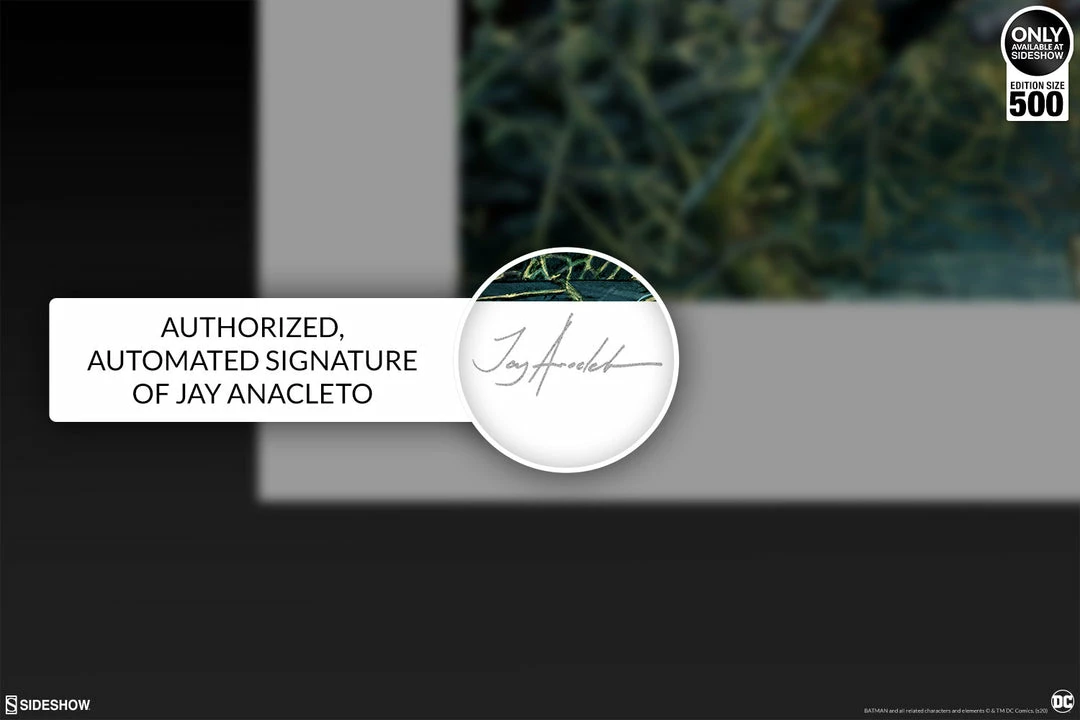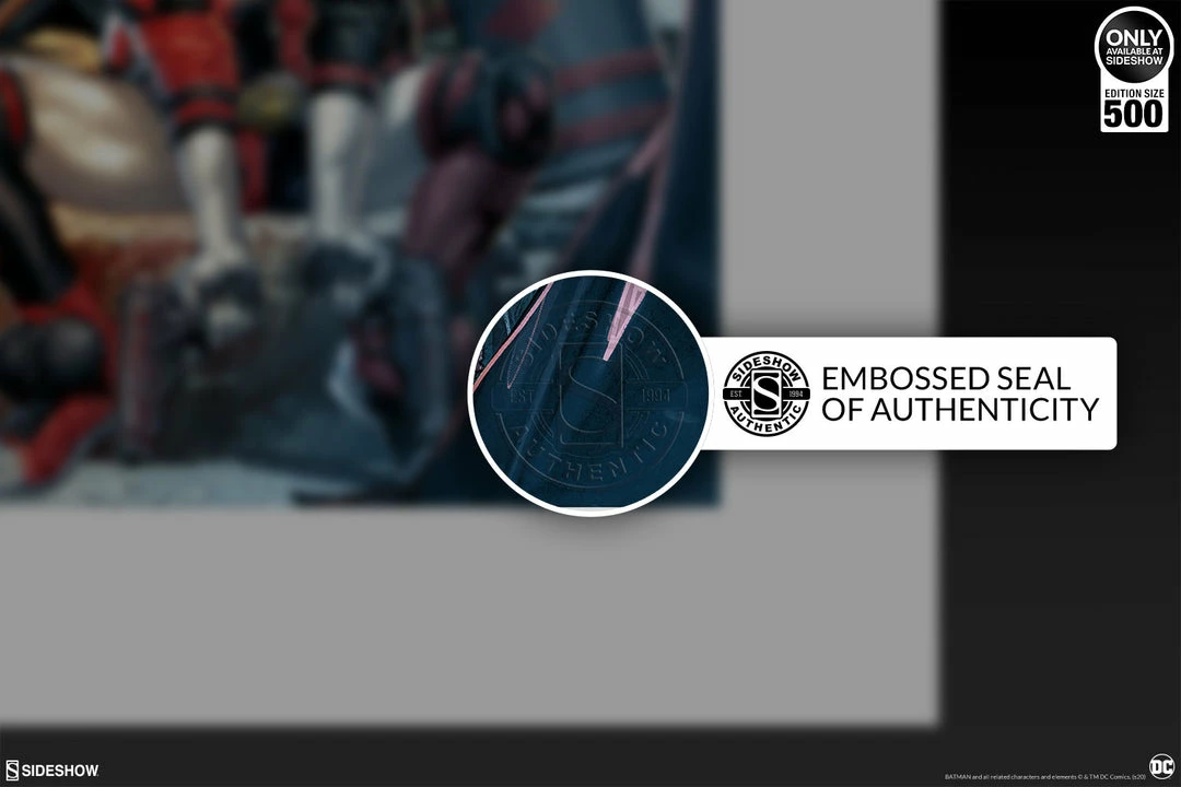 Originally created as a retailer exclusive variant cover for Batman™: Detective Comics #1000, a landmark issue celebrating 80 years of Batman in DC Comics, this highly detailed comic book artwork is now available to fans as a fine art collectible exclusively through Sideshow. Each Batman™: Detective Comics #1000 Fine Art Print features an authorized, automated artist signature and an embossed Seal of Authenticity as a part of the limited edition of 500 pieces.