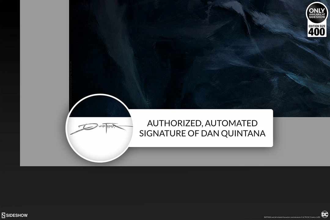 Originally created as a variant cover for Batman: Detective Comics #1006 (2016), written by Peter J. Tomasi for DC Comics, this dreamy illustration of the Dark Knight is now available in a fine art collectible format. Each Batman: Detective Comics #1006 Fine Art Print features an authorized, automated artist signature and an embossed Seal of Authenticity as a part of the limited edition of 400 pieces.