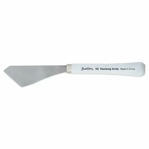 These fine quality painting knives are made to Bob Ross’s specifications. Each knife measures slightly more than 8″ overall. The blades are approximately 3-3/4″ long.