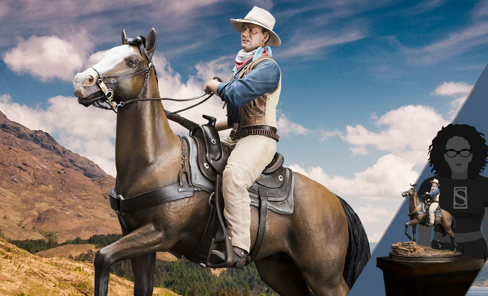 Sideshow and Infinite Statue present the John Wayne 1:6 Scale Statue from the Old & Rare collection. This is a sculpture project that required more time and effort than for virtually all the others that we had previously made. The study of details developed directly from the John Wayne archives enabled us to attain absolute accuracy in both historical and technical aspects. The notable size of an equestrian statue in this format, featuring John Wayne himself (a man 193 centimeters tall), makes it a true cult object for everyone who loves cinema and a great actor of Wayne’s caliber. Nothing comparable dedicated to the world of westerns had ever been created before.