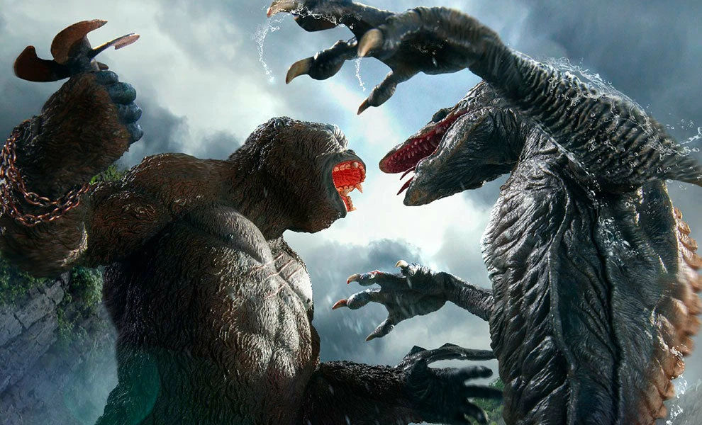 The Monsterverseβ’ brought usΒ Kong: Skull IslandΒ which revitalized the King Kong story and added new and dangerous monsters to the mythos, including the vicious Skullcrawlers. This new 32cm vinyl figure set has Kong facing off against one of these giant creatures. Kong uses the propeller of a wrecked boat as a weapon as the Skullcrawler rears back to back. This piece is meticulously sculpted to show the rage in Kongβs face, with detailed hair and the scars on his chest.. He is painted by hand to bring out all the incredible nuances of his expression and recreate the realism that makes the figure look alive. The Skullcrawler is on a base that simulates it emerging from the water to attack Kong from below.
