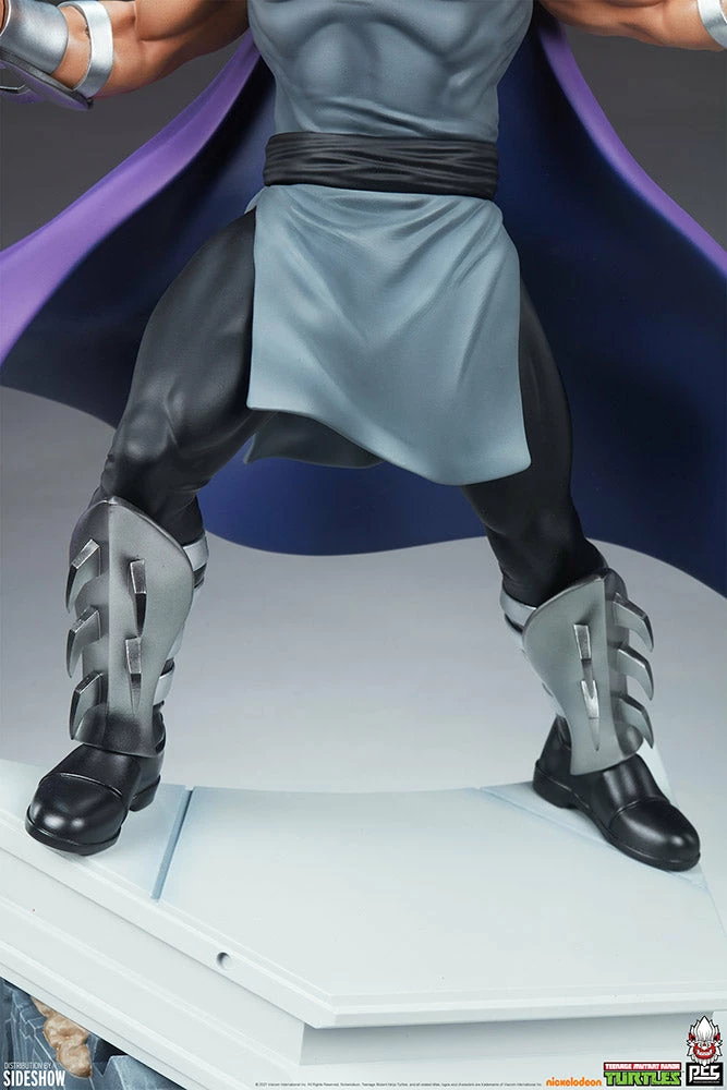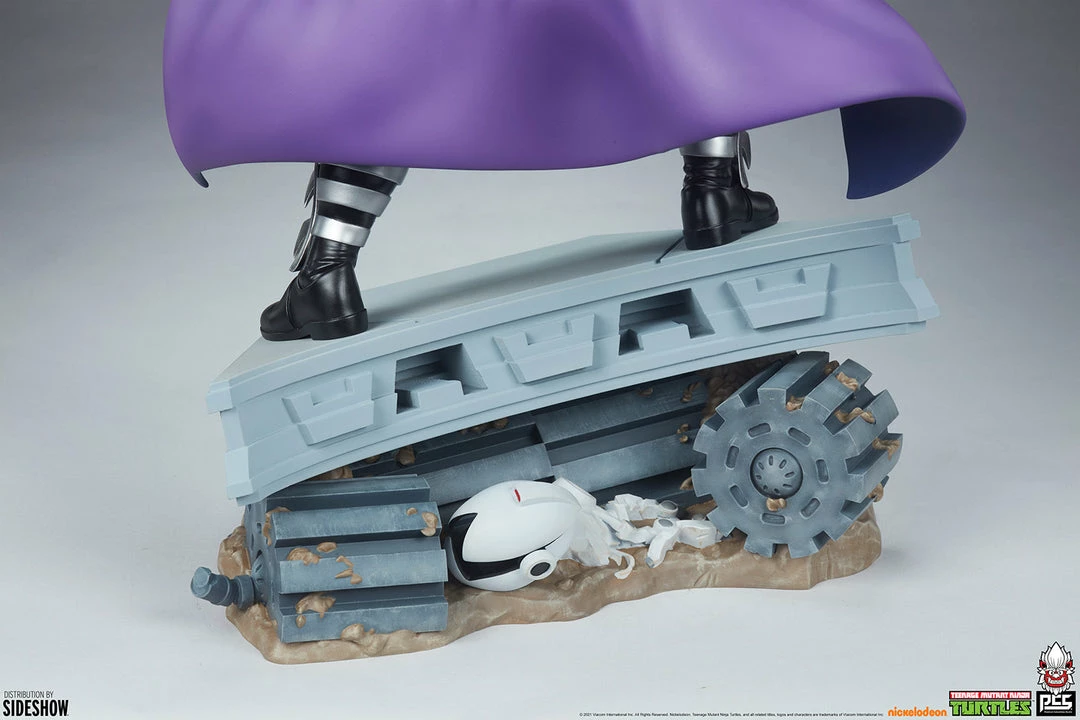 Every great group of heroes needs an awesome archenemy- thatโs where Shredder steps in. The Shredder Statue measures 22โ tall on top of the tank treads of Krangโs Dimension X stronghold, the Technodrome. Behind the ruthless ninja warrior, a mangled Mouser robot can be spotted beneath the platform base. Shredder stands ready to defeat the Turtles and Master Splinter once and for all, wearing his iconic spiked armor and striking purple cape to recreate his signature look.