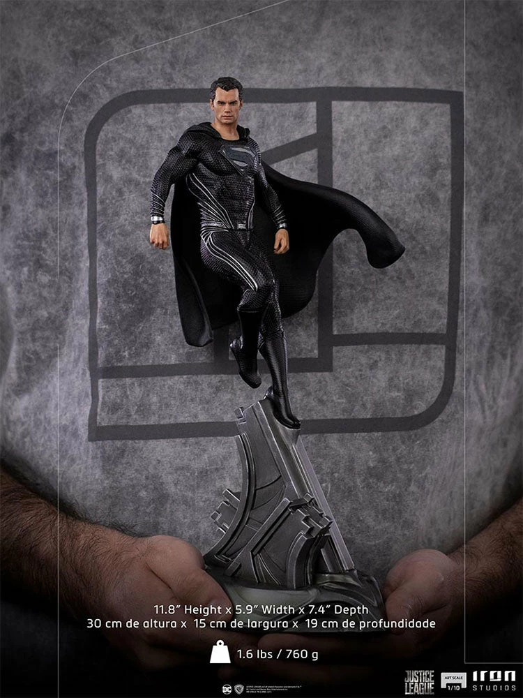 In this way, Iron Studios proudly presents its“Superman Black Suit Art Scale 1/10 Statue – Zack Snyder’s Justice League – Iron Studios”, with its greatest hero wearing the iconic black and silver uniform, just as it should be on his triumphant return, to join forces with the other heroes in the creation of the Justice League, to prevent the destruction of Earth by the invading forces of the intergalactic tyrant Darkseid, under the command of his general Steppenwolf and his legion of Parademons.