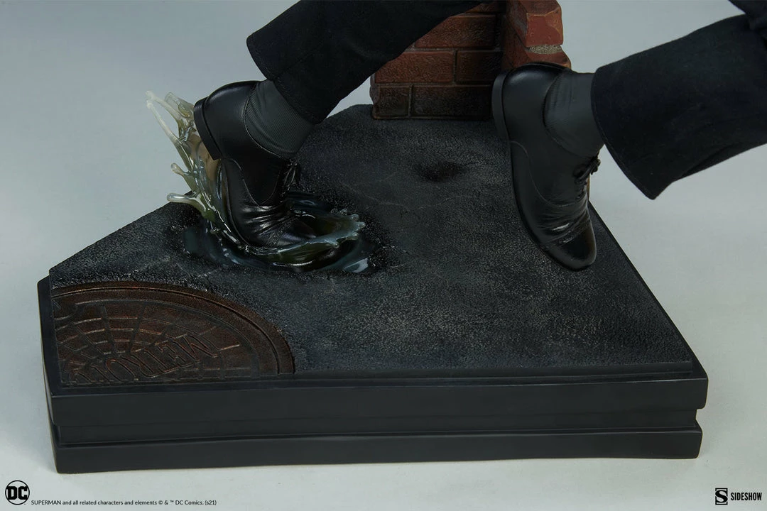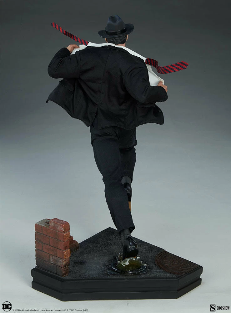 The Superman: Call to Action Premium Format™ Figure measures 19.5” tall as Clark Kent sheds his civilian disguise to become Superman, running through a Metropolis alley as he answers his city’s cry for help. This inspiring and dynamic DC Comics collectible captures both sides of the Kryptonian’s truly heroic self, as both a mild-mannered reporter and the Man of Steel.