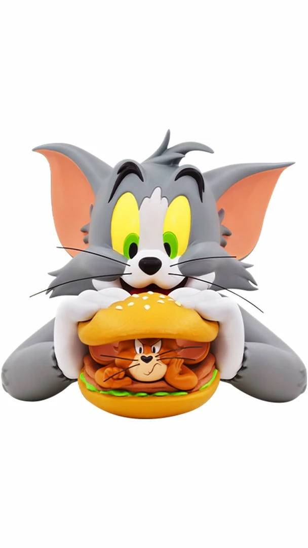 The classic cartoon Tom and Jerry was created by famous animators, William Hanna and Joseph Barbera. This 23cm high bust is inspired by the never-ending chases between Tom and Jerry. Tom is ready to eat the “Jerry Burger”, yum yum!