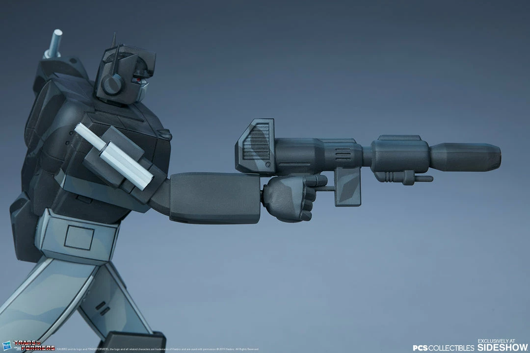 The Nemesis Prime Classic Scale Statue features a unique and meticulous paint application to capture the iconic two-dimensional style of the Generation 1 Transformers cartoon as a three-dimensional collectible. Nemesis Prime is detailed with light and dark grey tones with red and blue accents to recreate his signature animated look. His left shoulder also features a purple Decepticon logo, showing his dark allegiance. Pair Nemesis Prime with the Optimus Prime Classic Scale Statue for an incredible showdown in your Transformers collection.