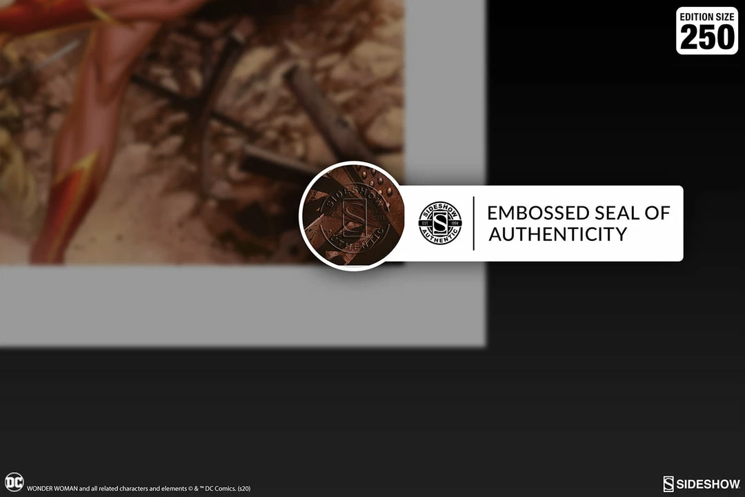 Originally created as a variant cover for the milestone issue Wonder Woman #750 (2019), written and drawn by dozens of creative teams for DC Comics, this dazzling comic book collectible artwork is available for fans in a fine art format. Each Wonder Woman #750: WWII Fine Art Print is hand-signed by J. Scott Campbell and features an embossed Seal of Authenticity as a part of the limited edition of 250 pieces.