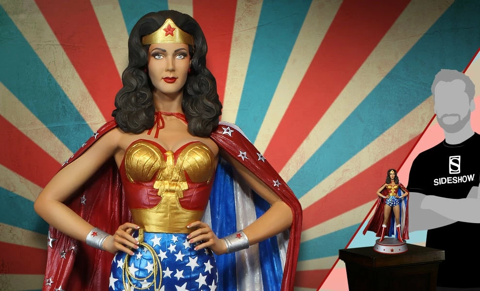 Sideshow and Tweeterhead are proud to announce the newest addition to the DC Maquettes – the Wonder Woman (Cape Variant)! Based on the likeness of Lynda Carter, known for her iconic portrayal of Wonder Woman.Β